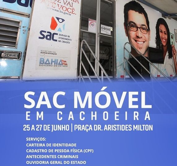 Sac Móvel estará em Cachoeira neste domingo (25) e vai até terça; confira os serviços