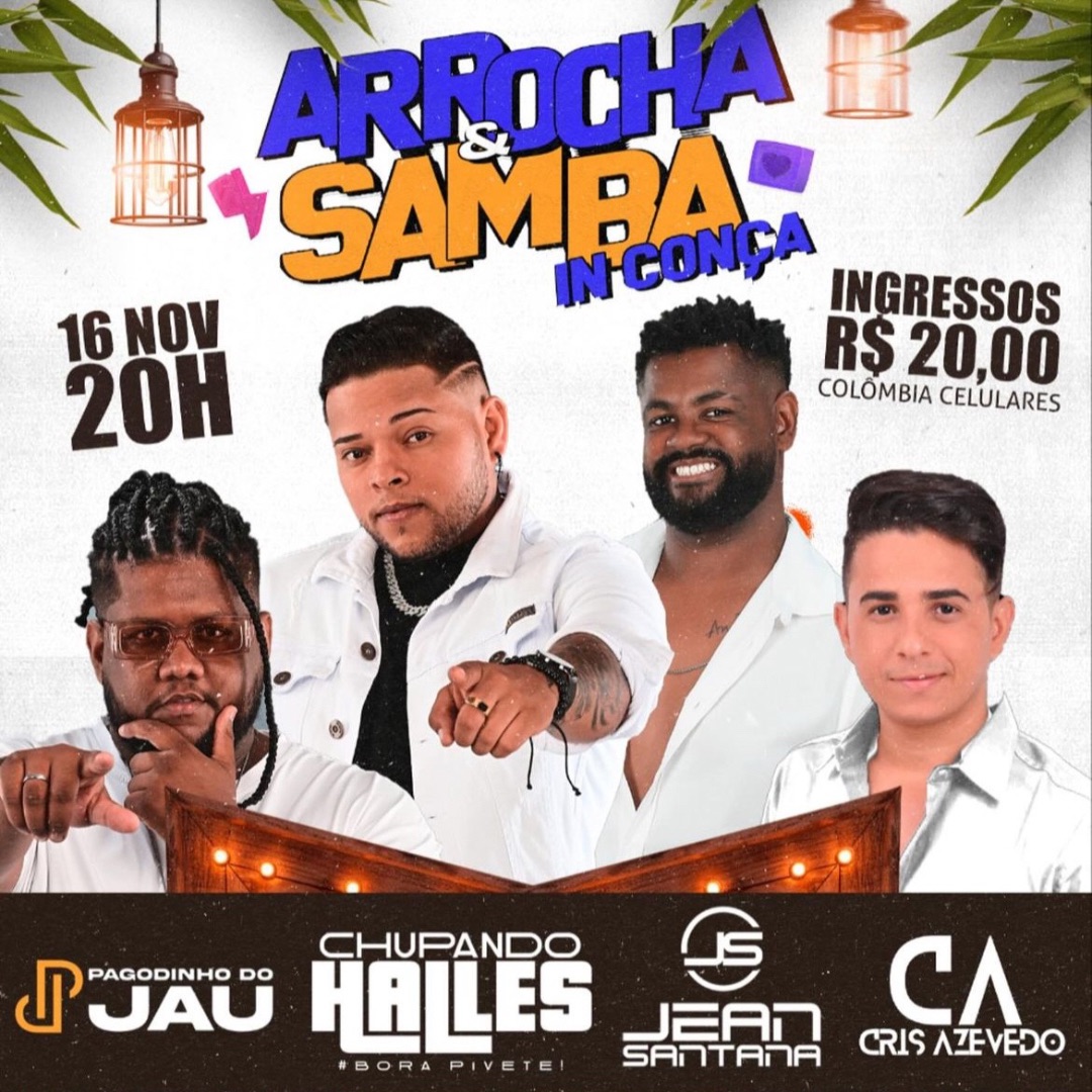No dia 16 de novembro, sábado, a partir das 20h, Conceição da Feira será palco de um grande evento que promete animar a cidade. O Arrocha & Samba in Conça chega com tudo no Clube A.A.U, reunindo talentos da música para uma noite inesquecível.