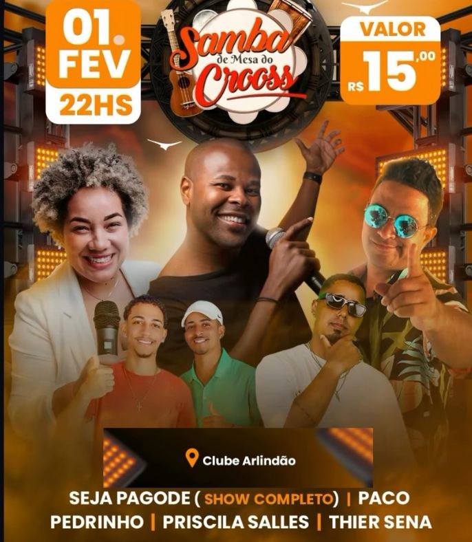 Acontecerá, dia 01 de fevereiro (sábado), a partir das 22h, um dos eventos de samba que mais movimenta a região do Recôncavo Baiano. O Samba de Mesa do Cross. A primeira edição deste ano de 2025 contará com as seguintes atrações: Seja Pagode (show completo), Paco, Pedrinho, Priscila Salles e Thier Sena.