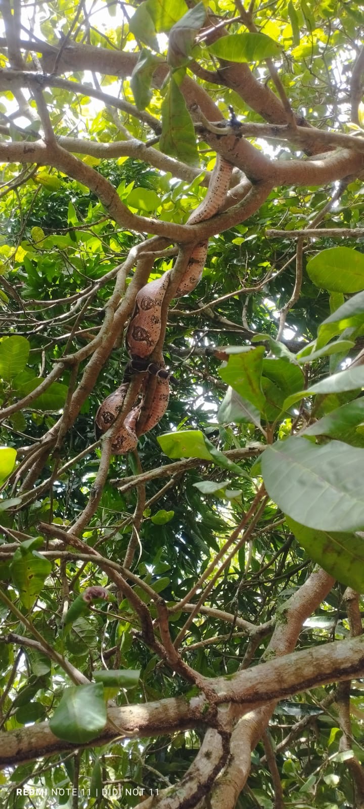 O episódio foi registrado e enviado pelo leitor do TV Conça, Raimundo Magalhães, morador da região, que relatou ter sido surpreendido ao perceber o animal enrolado em um cajueiro, próximo ao galinheiro da propriedade de Dona Vilma.