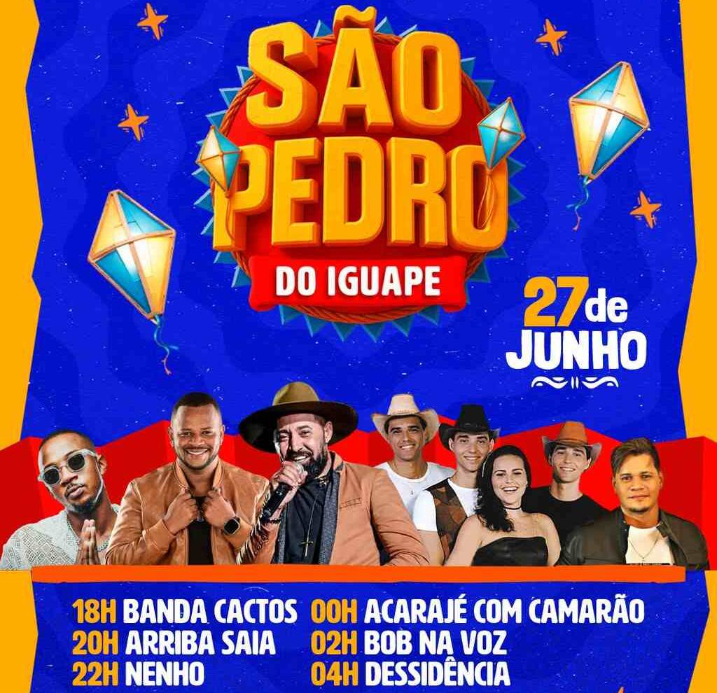 De 27 a 29 de junho, a Prefeitura Municipal da Cachoeira, no Recôncavo Baiano, realiza o São Pedro do Iguape 2025. Veja a programação completa: