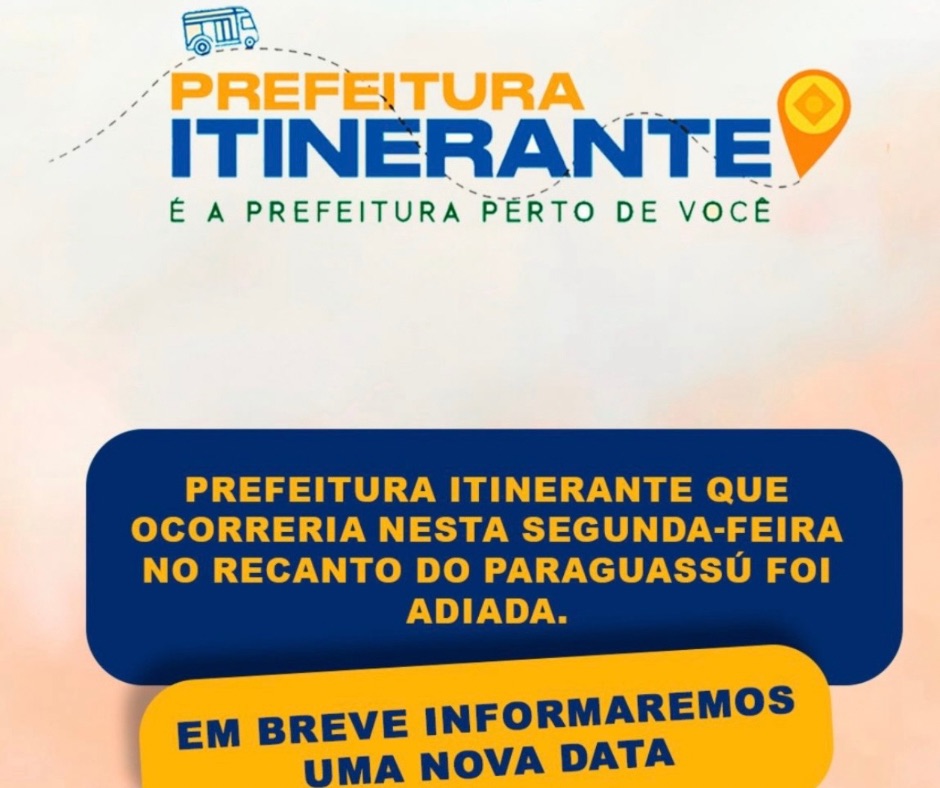 A edição do programa Prefeitura Itinerante, que estava marcada para ocorrer nesta segunda-feira no Recanto do Paraguaçú, foi adiada.