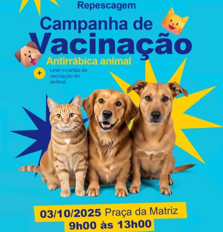 A ação acontecerá na Praça da Matriz, das 9h às 13h, e tem como objetivo garantir a proteção de cães e gatos contra a raiva, doença grave que pode afetar tanto animais quanto seres humanos.