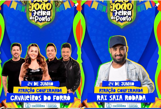 A prefeitura de Cachoeira anunciou o cantor Raí Saia Rodada e a banda Cavaleiros dos Forró como novas atrações para os festejos de São João deste ano.