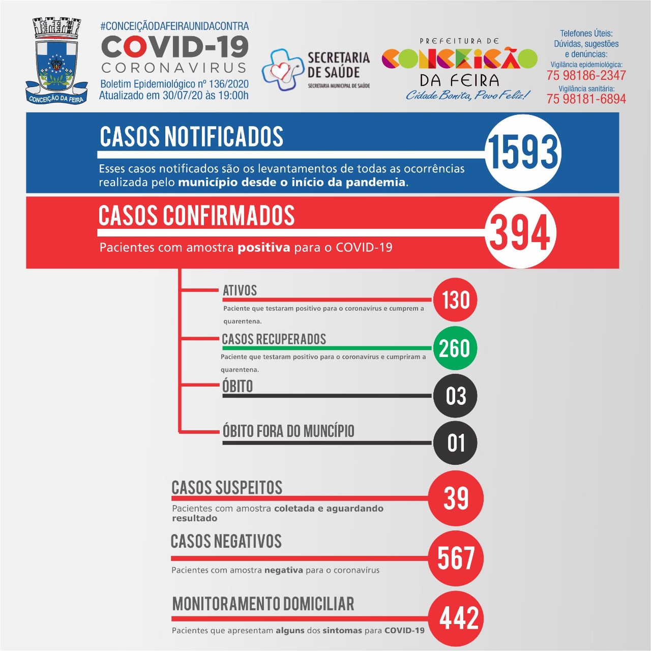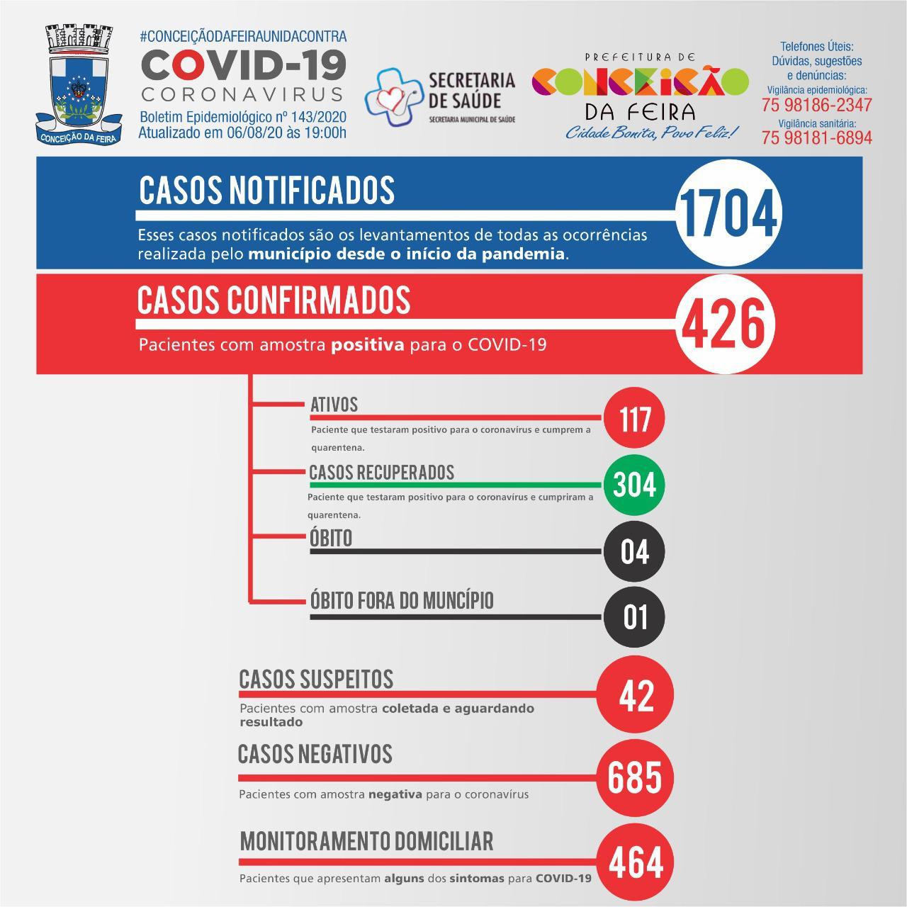 Conceição da Feira tem 436 casos confirmados do Coronavirus; veja boletim deste domingo (9)